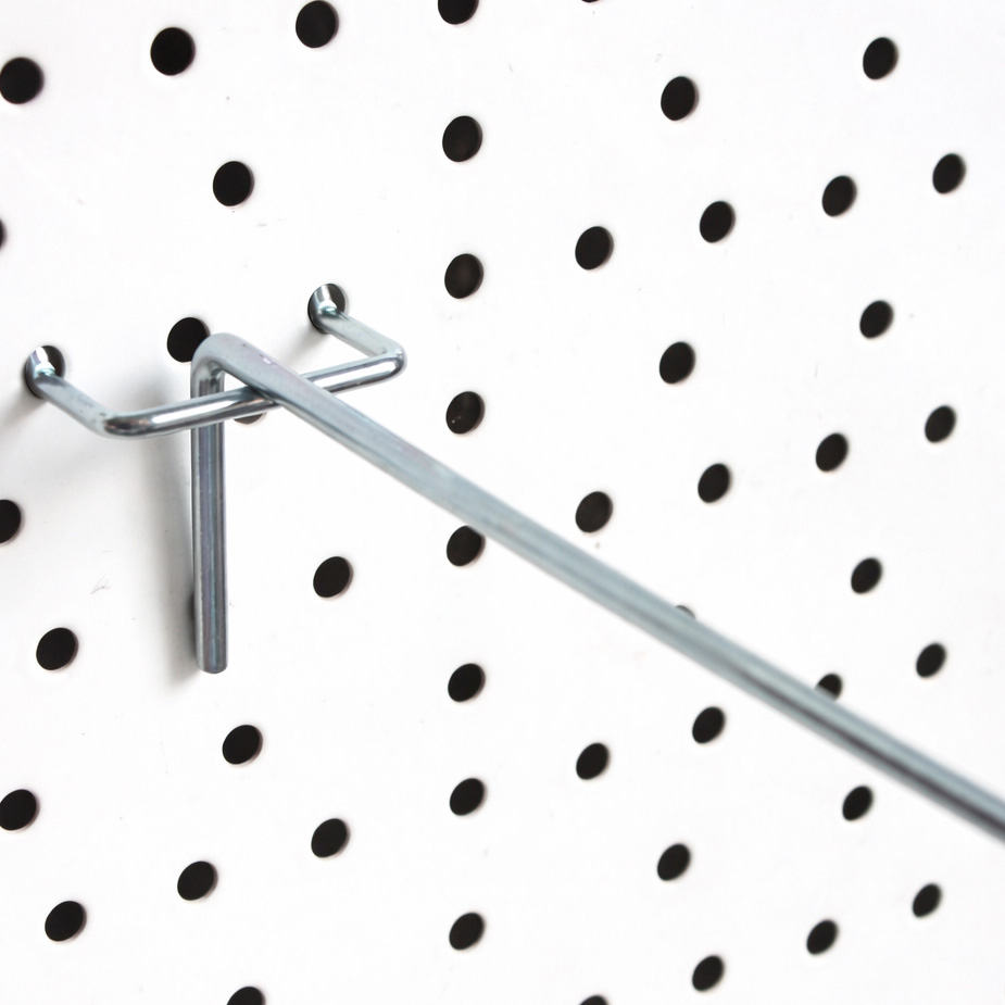 Crochet simple pour panneau arrière métallique perforé – Flexible, robuste et polyvalent!