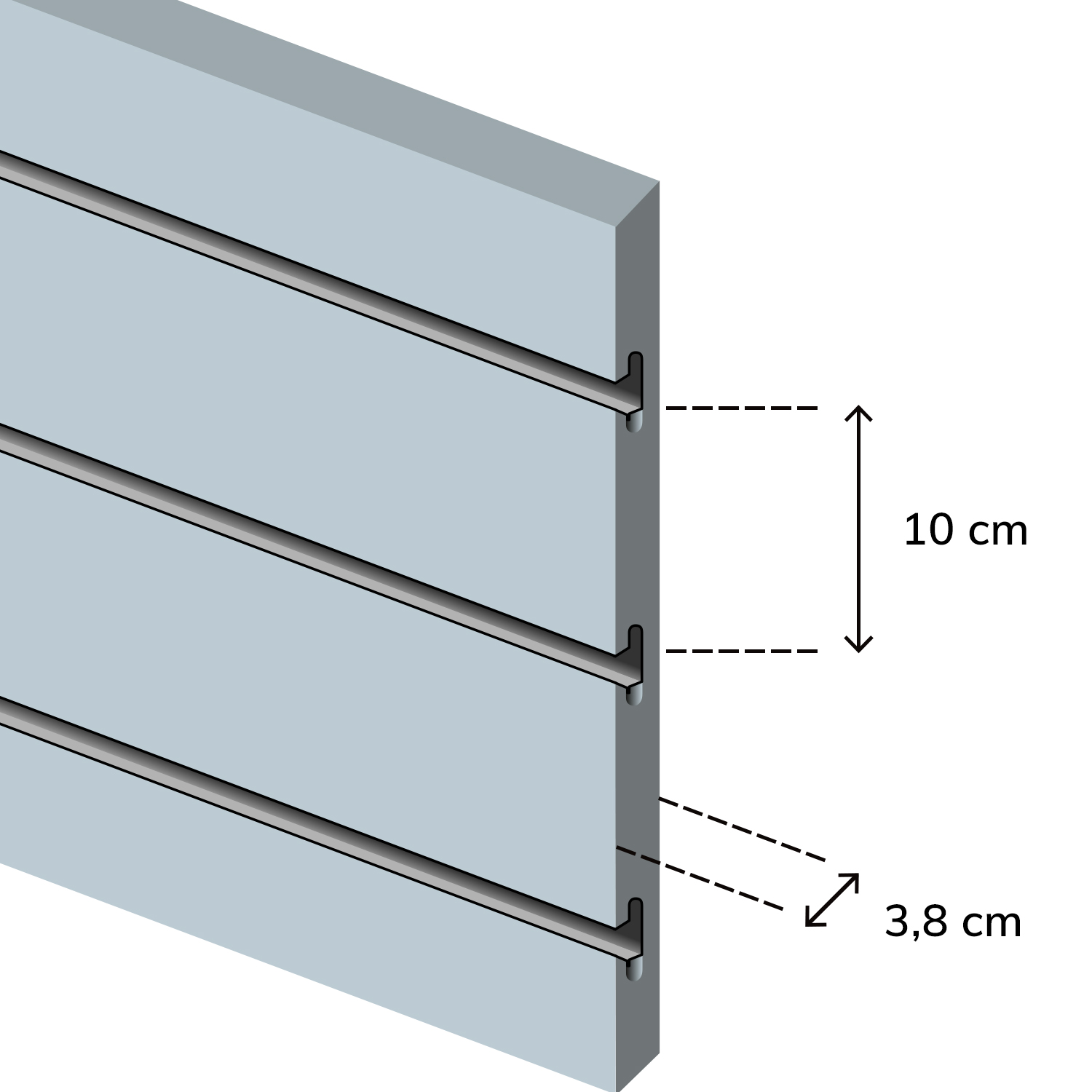 - épaisseur du panneau rainuré : 38 mm