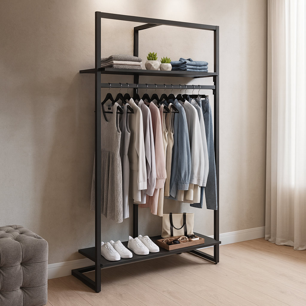 - penderie moderne pour une présentation optimale de vos textiles sur cintres
