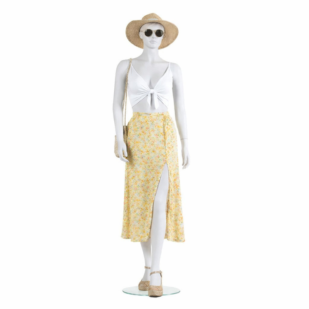 Mannequin femme, jambe gauche devant