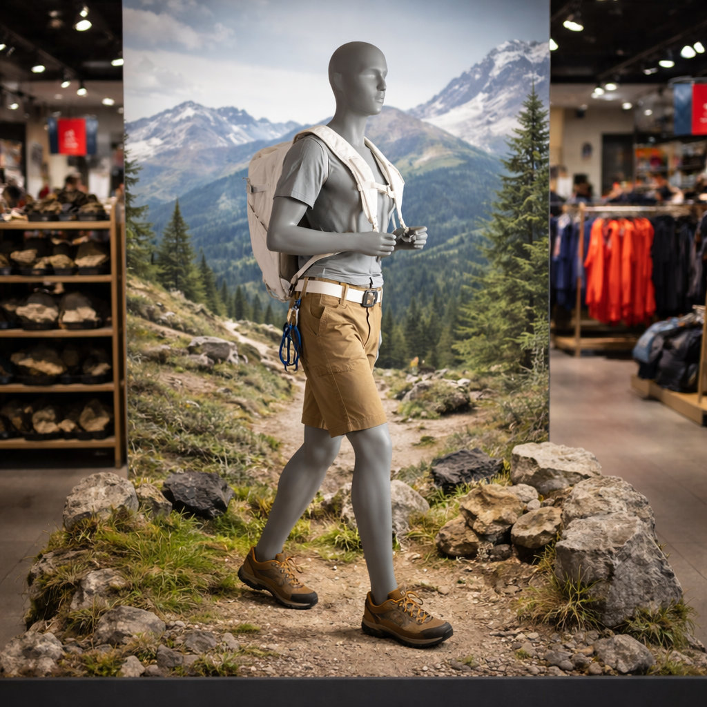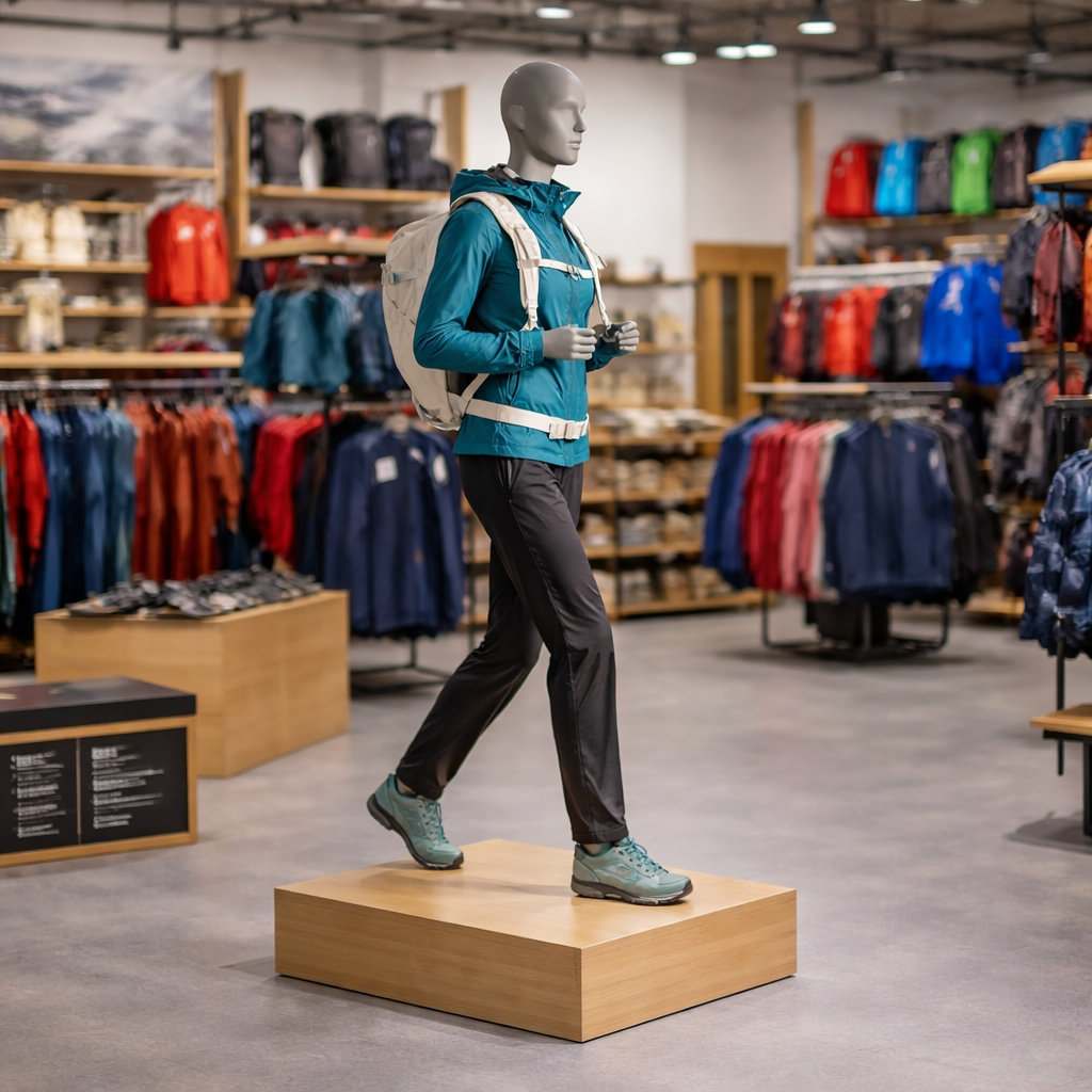 Mannequin femme randonneur tête abstraite