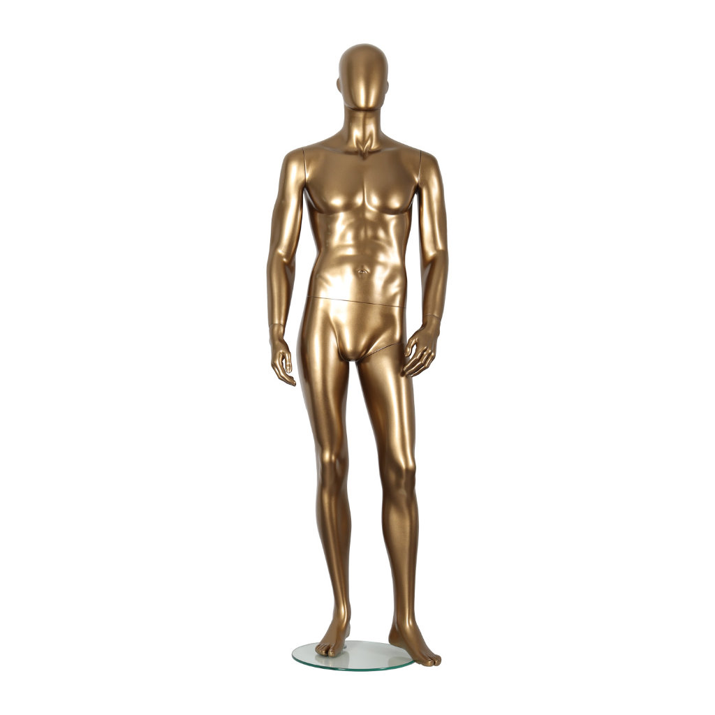 Mannequin homme doré avec tête d'œuf