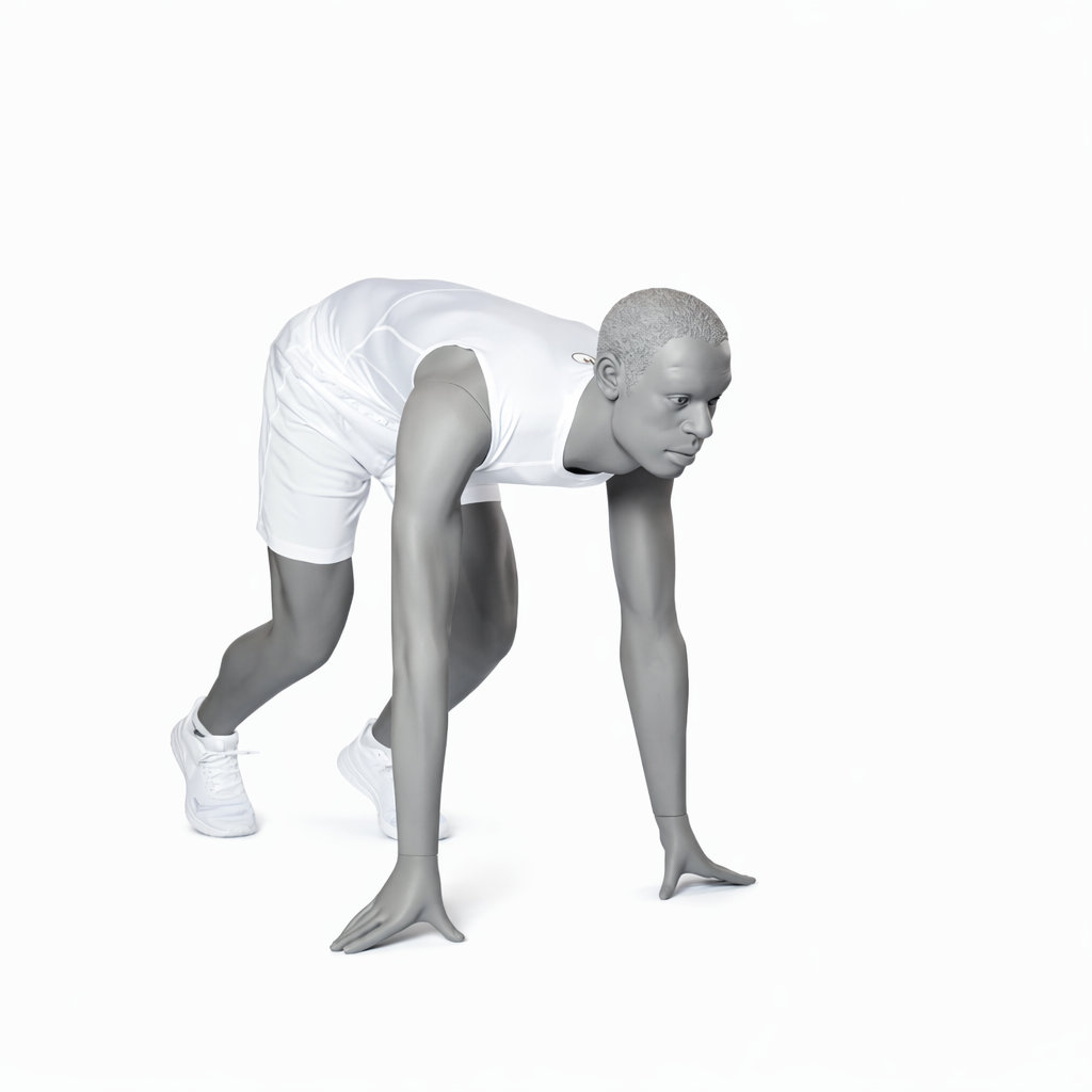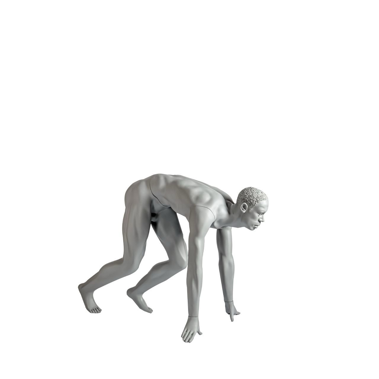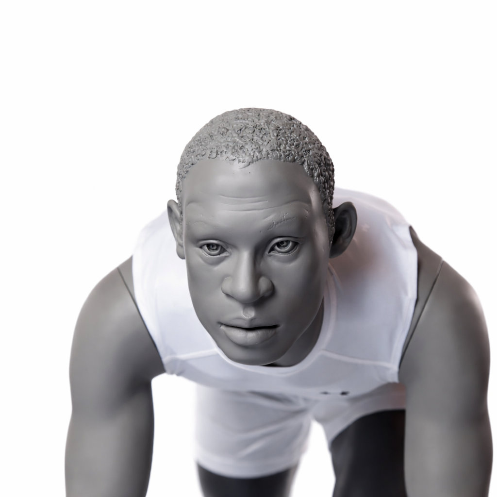 Mannequin homme running en position de départ tête stylisée