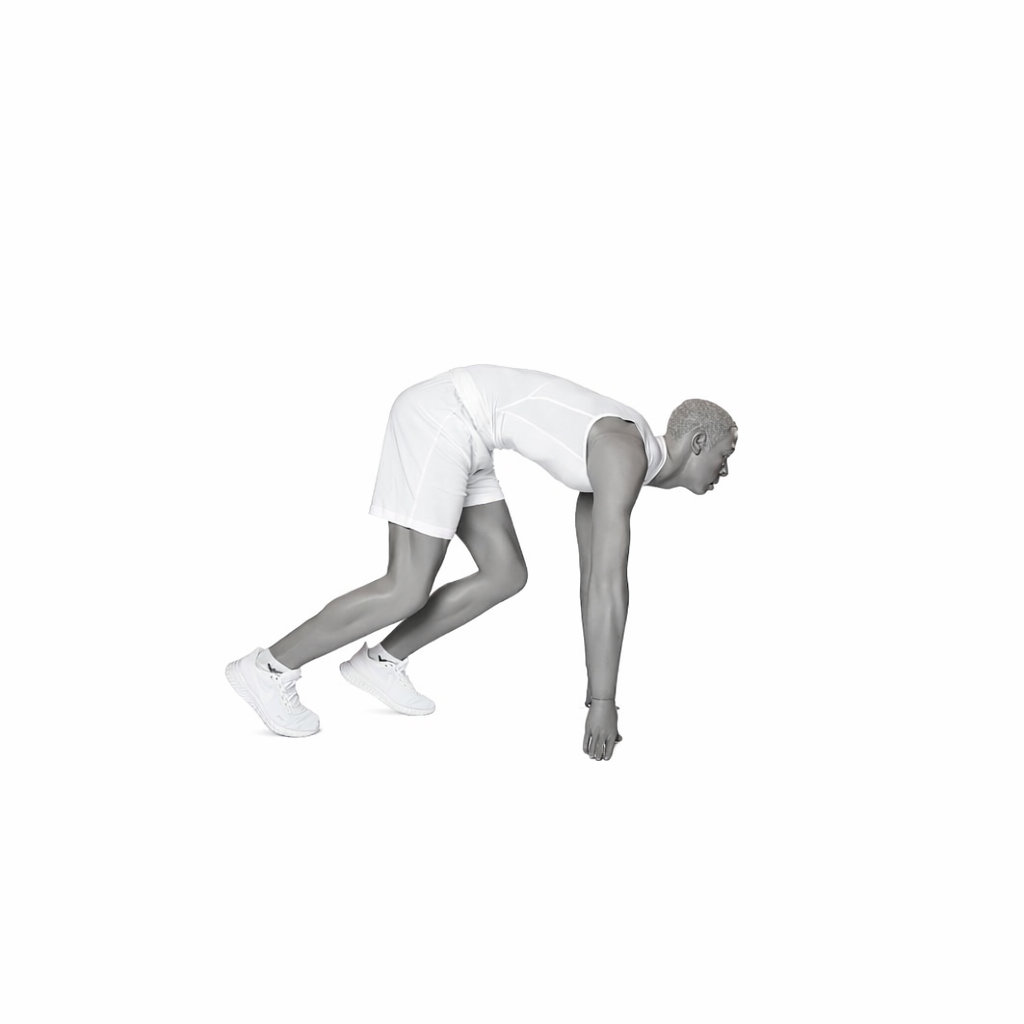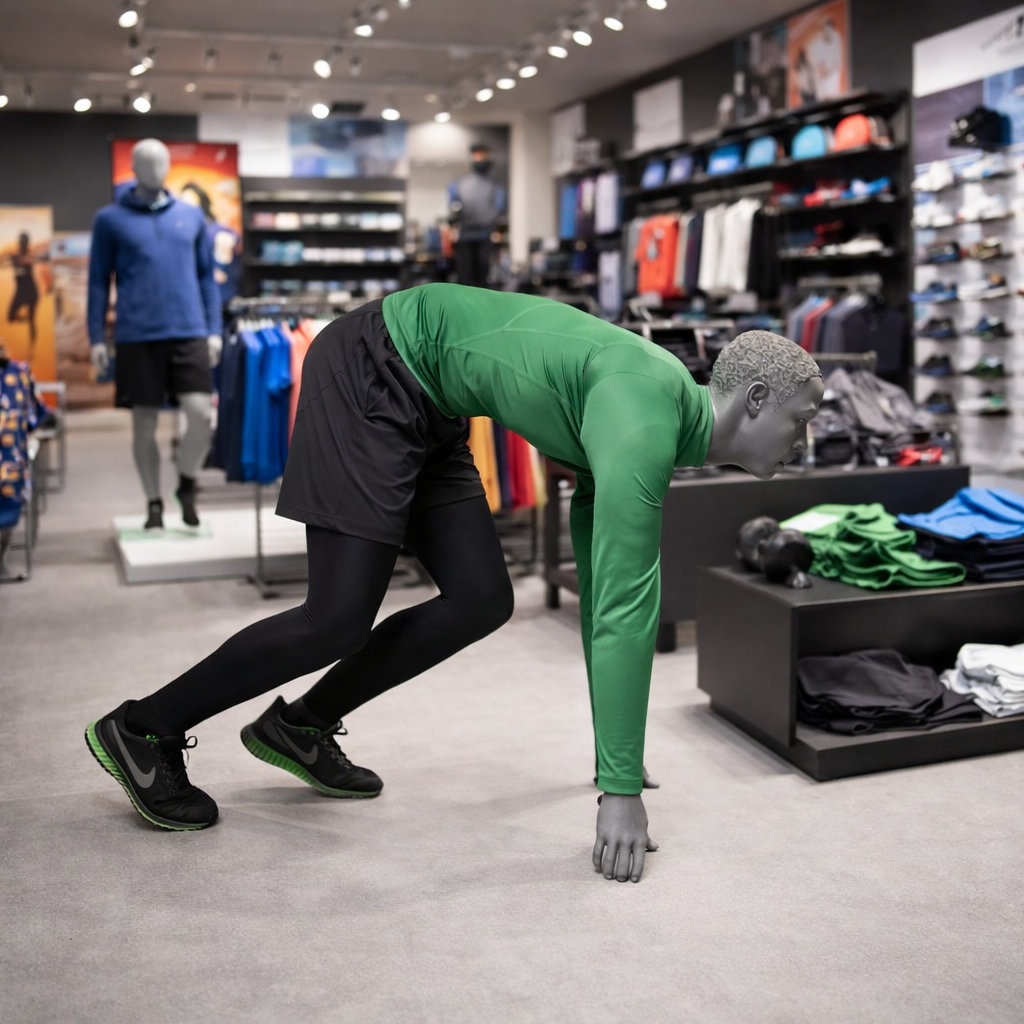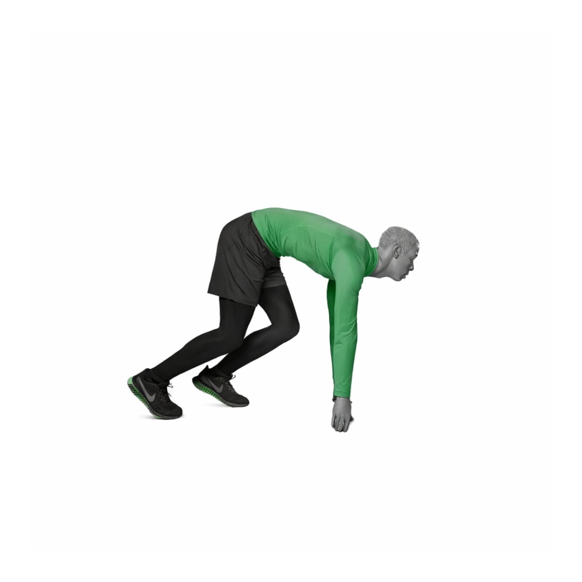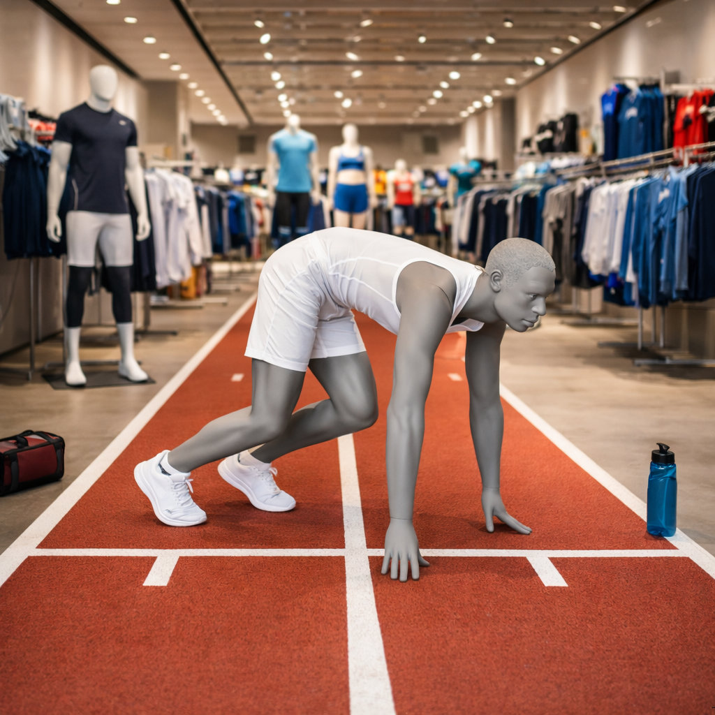 Mannequin homme running en position de départ tête stylisée