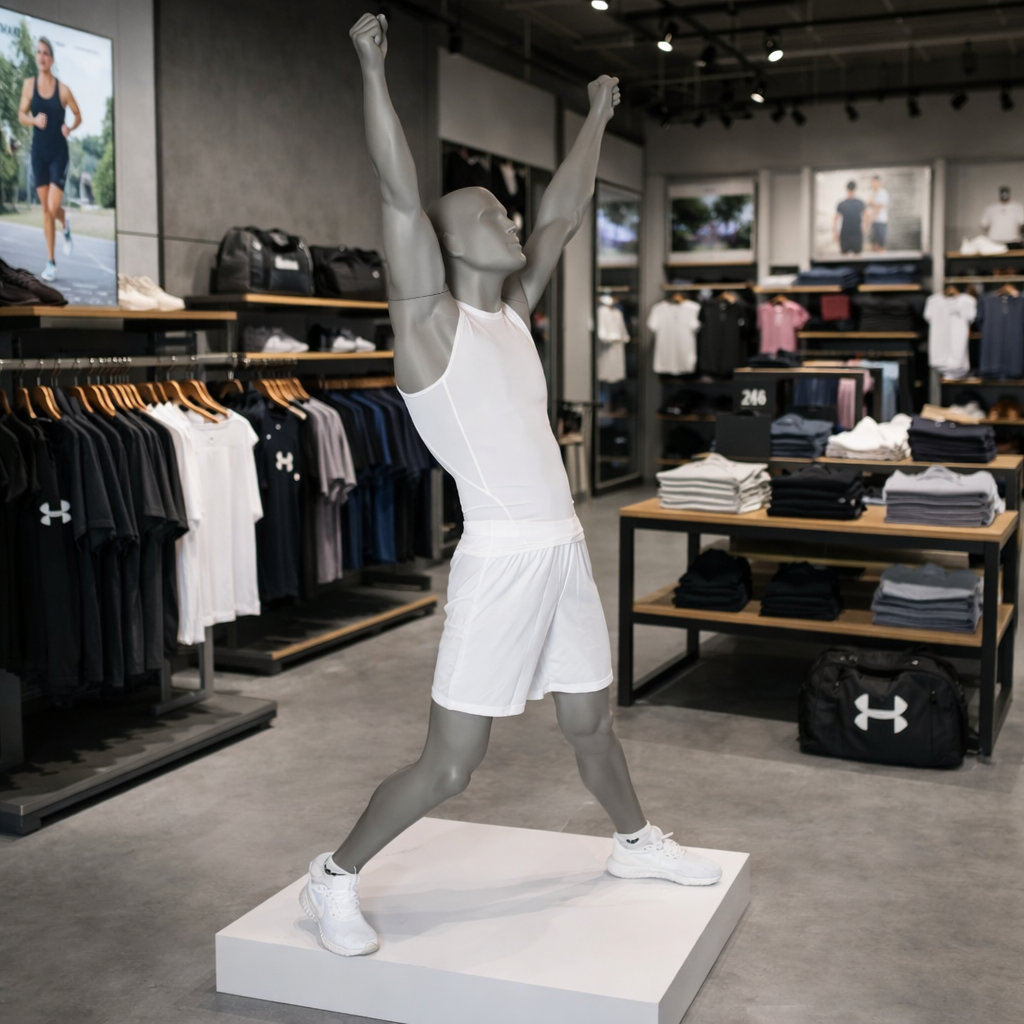 Mannequin homme sportif, pose gagnant