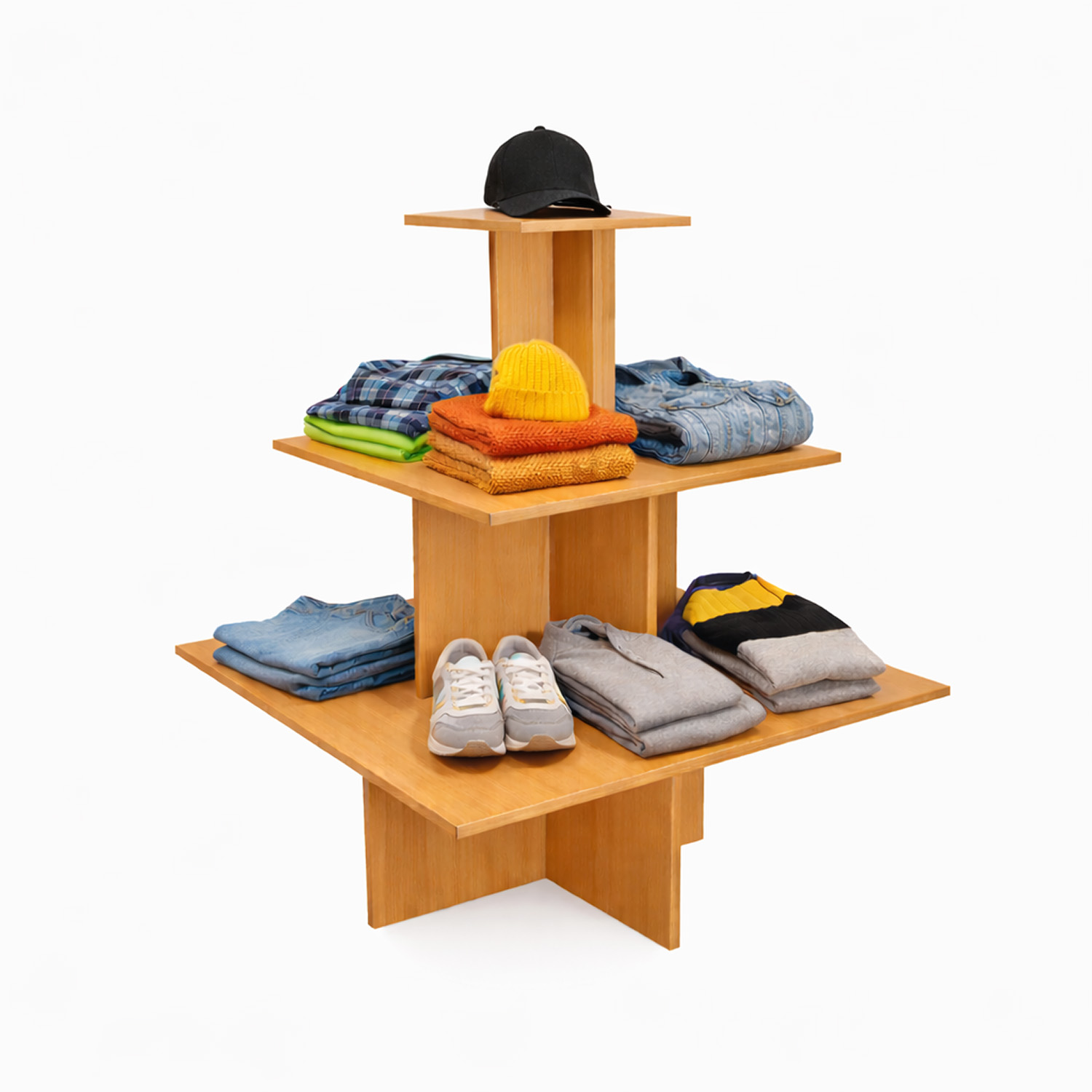 - Type de produit : présentoir pyramide 3 niveaux / table de vente