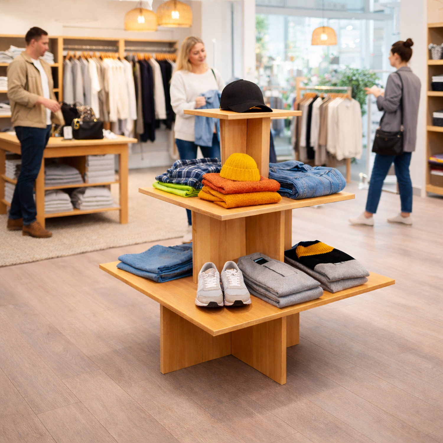 - Matériau : bois (construction robuste pour un usage professionnel en magasin)