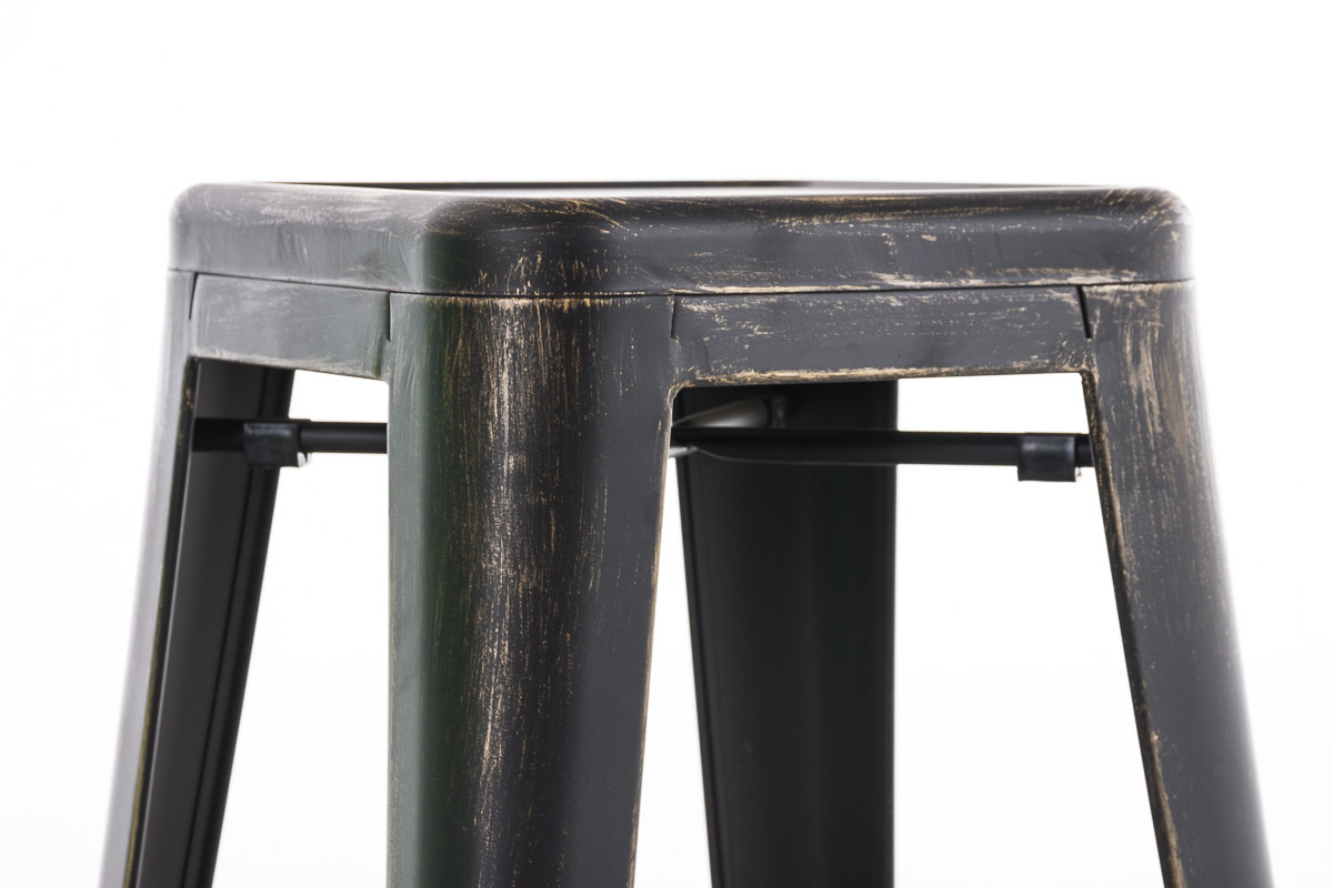 Ce tabouret de bar en métal revêtu par poudre est toujours très stable. Entre les pieds et sous l'assise se trouvent des entretoises qui assurent une grande stabilité - les premières servent également de repose-pieds confortables.